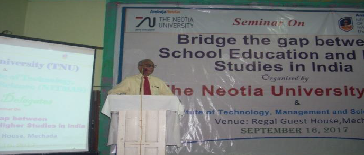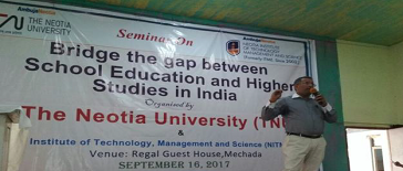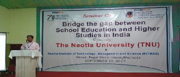 One day Seminar on "Bridge the gap between School education and Higher Studies in India", organized by ‘The Neotia University’ and ‘Neotia Institute of Technology, Management and Science’ held on 16th September, 2017 (Saturday) at Regal Guest House, Mechada.HMs, AHMs and Assistant Teachers from various Schools registered for the Seminar and actively participated in the interaction session responding to our call to come together in making West Bengal a high seat of learning, like always.